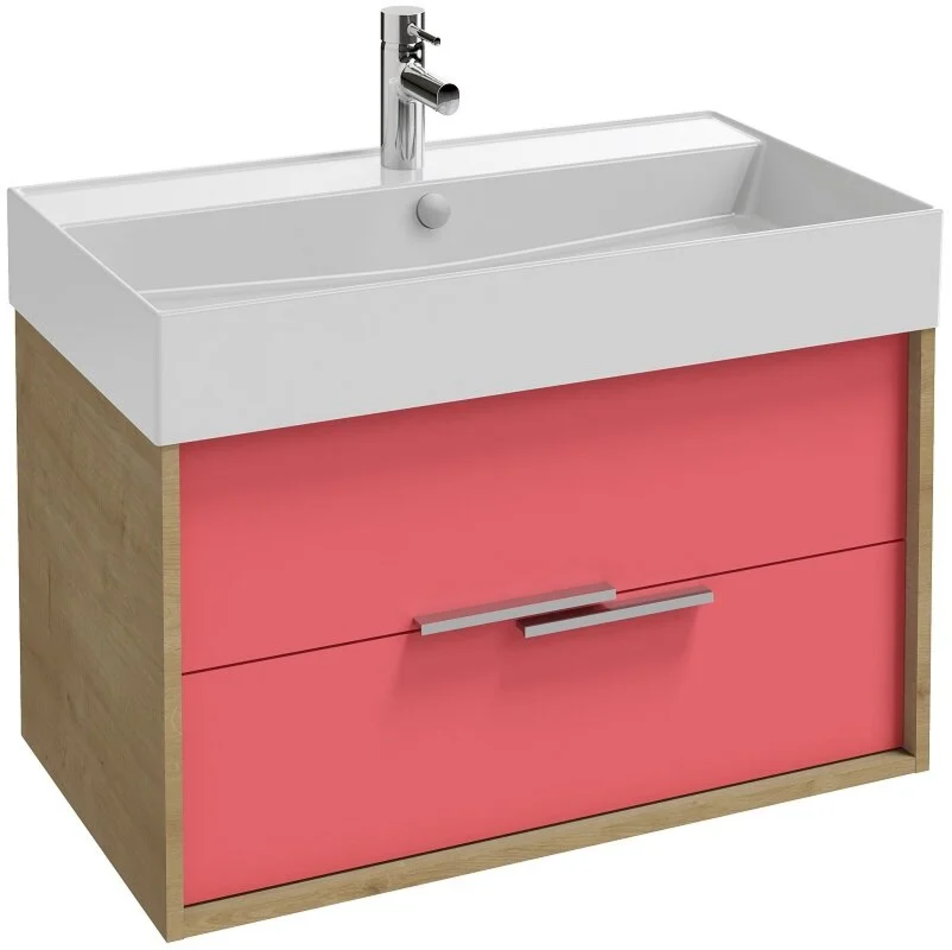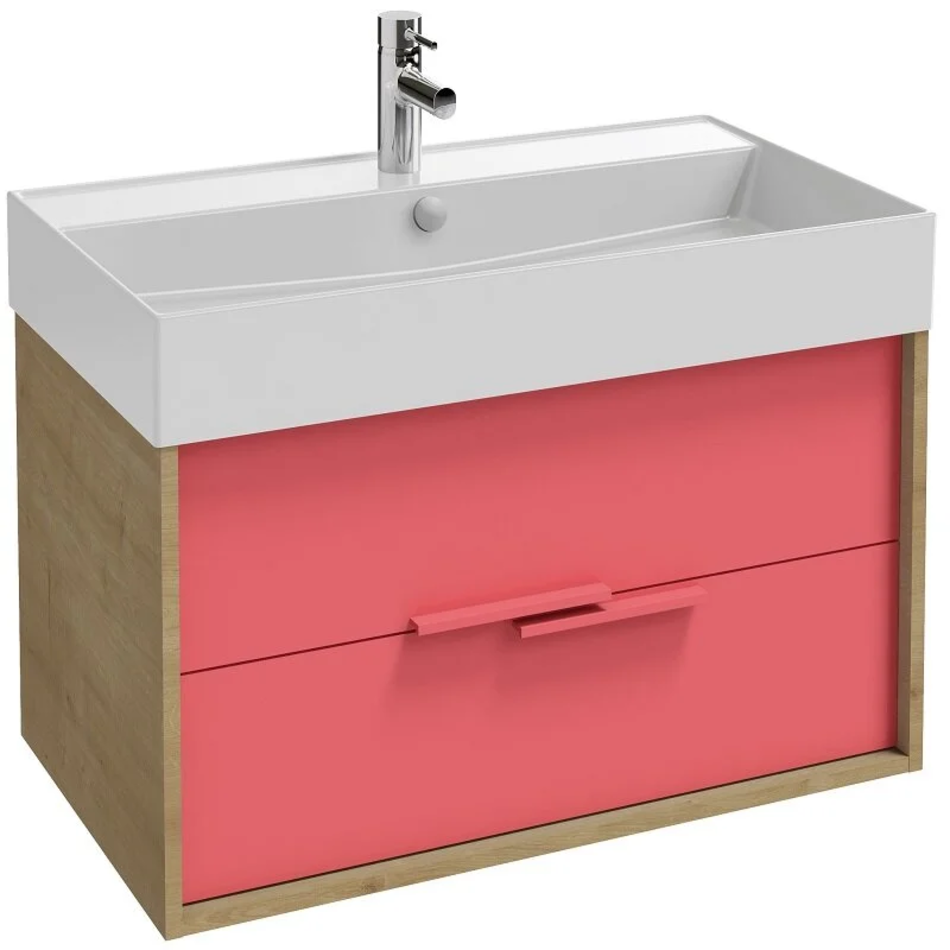 Тумба под раковину Jacob Delafon Vivienne 80 см, корпус арлингтонский дуб, фасад алый матовый, ручки хром, EB1507-E70-M81