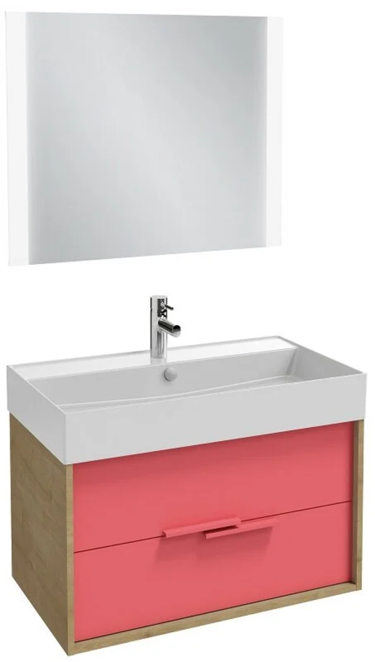 Тумба под раковину Jacob Delafon Vivienne 80 см, корпус арлингтонский дуб, фасад алый сатин, ручки хром, EB1507-E70-S44