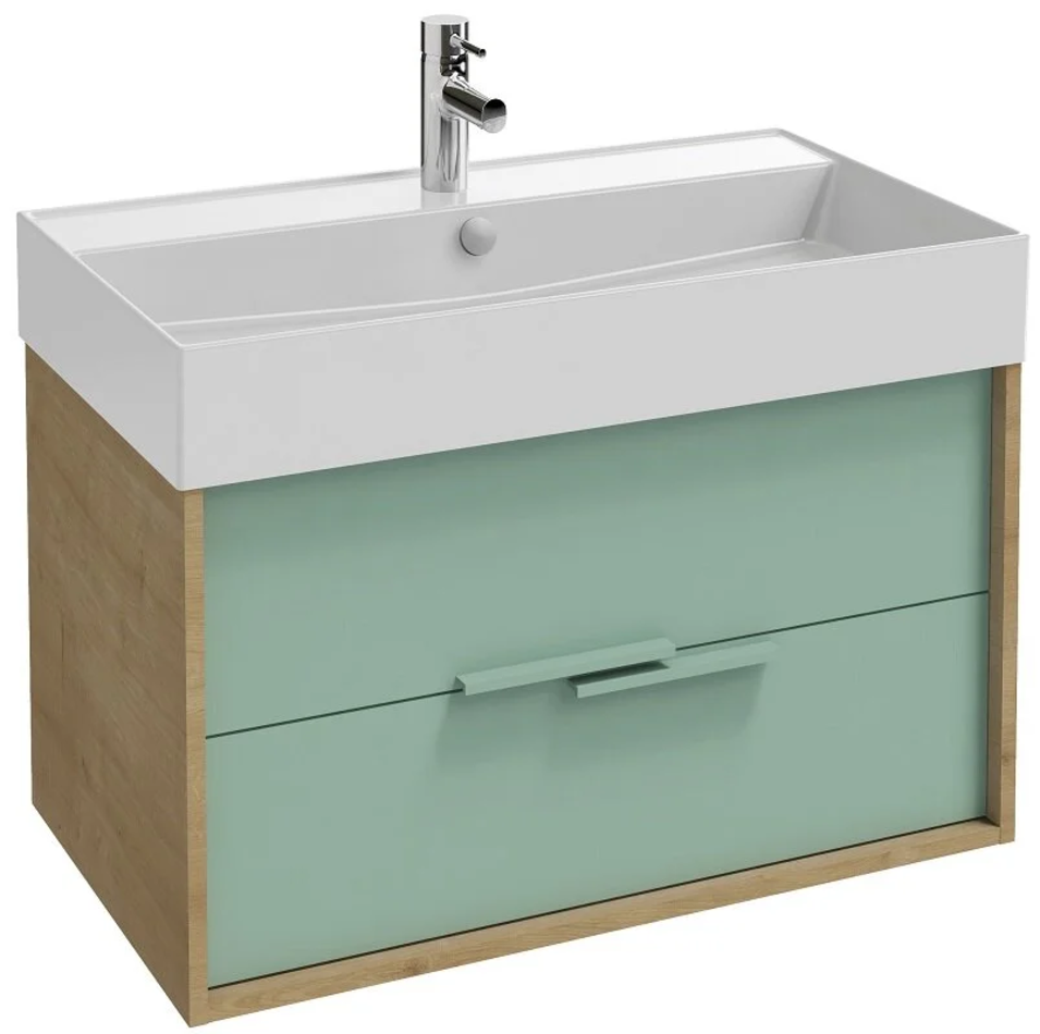 Тумба под раковину Jacob Delafon Vivienne 80 см, корпус арлингтонский дуб, фасад оливковый сатин, без ручек, EB1584-E70-S54