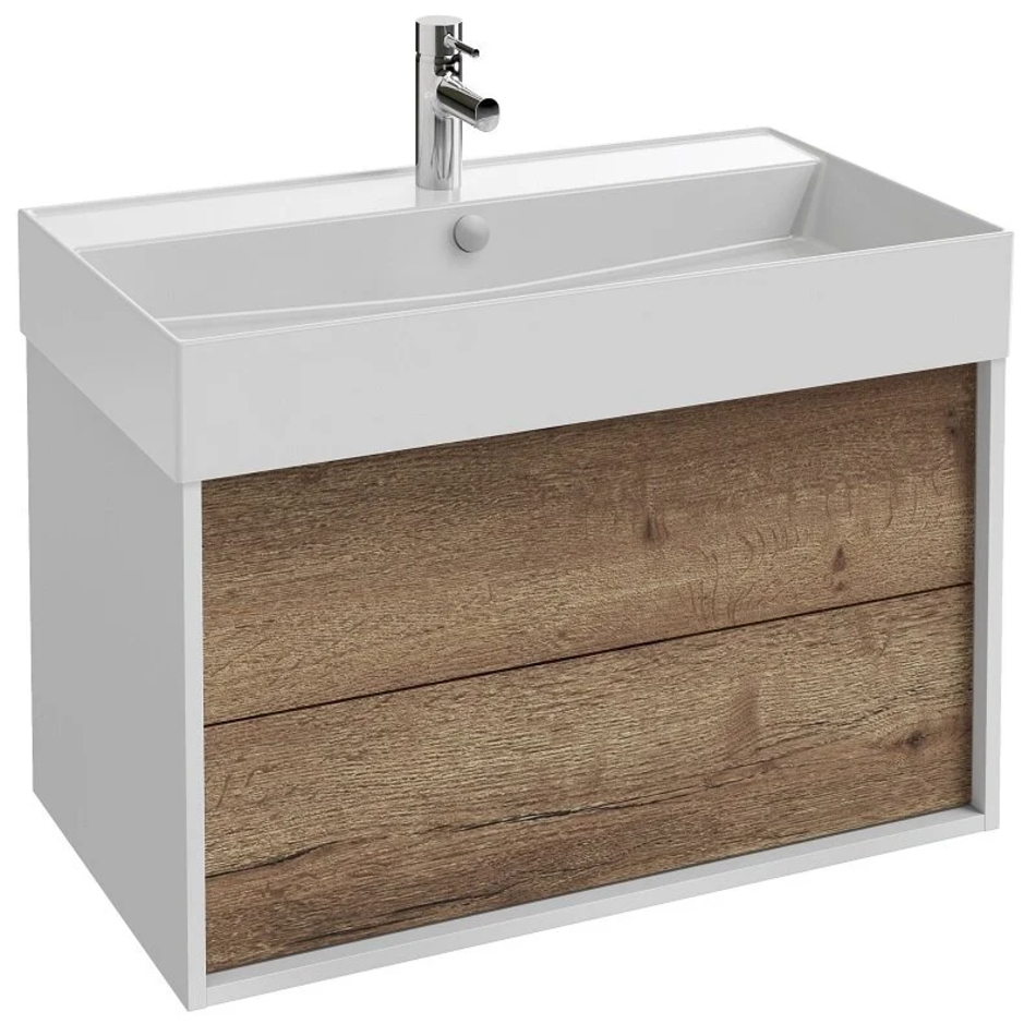 Тумба под раковину Jacob Delafon Vivienne 80 см, корпус белый глянцевый, фасад дуб табак, без ручек, EB1584-N18-E52
