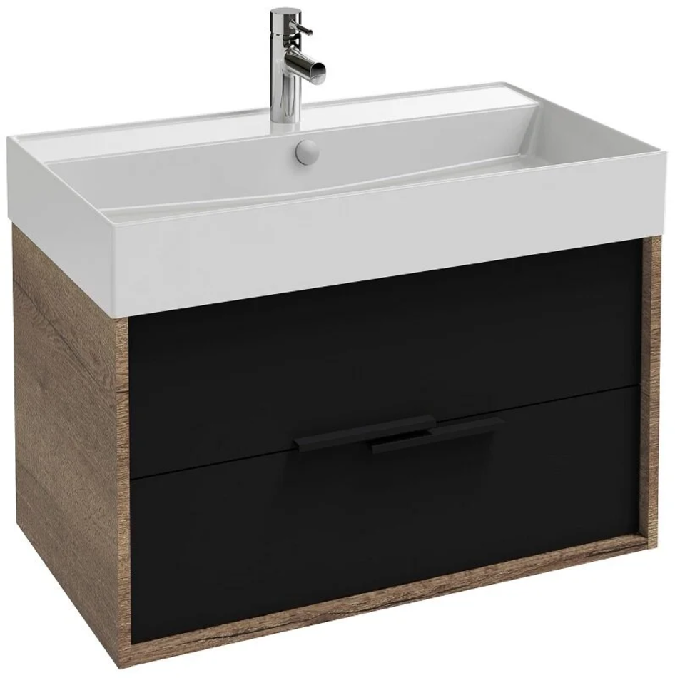 Тумба под раковину Jacob Delafon Vivienne 80 см, корпус дуб табак, фасад черный сатин, без ручек, EB1584-E52-S14