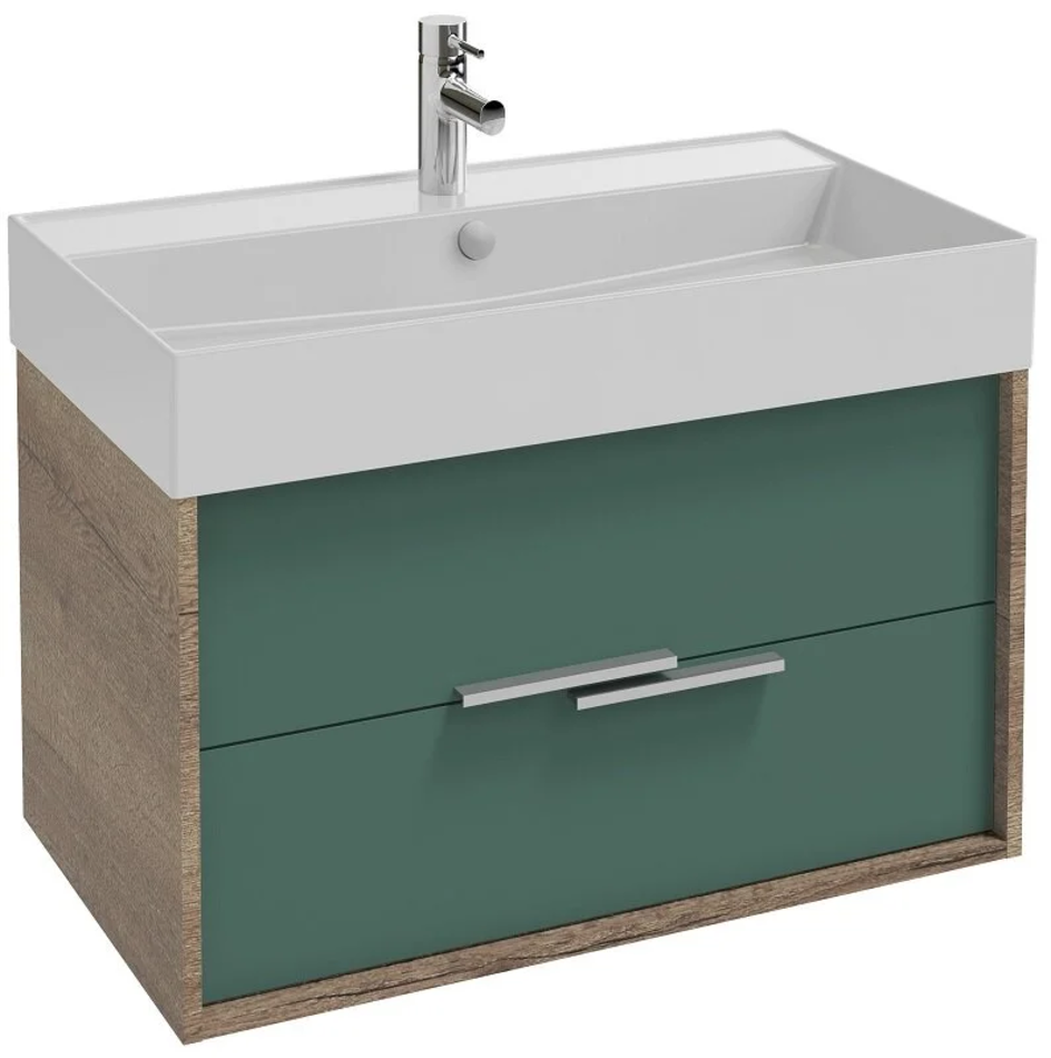 Тумба под раковину Jacob Delafon Vivienne 80 см, корпус дуб табак, фасад эвкалипт глянцевый, ручки хром, EB1507-E52-G1O