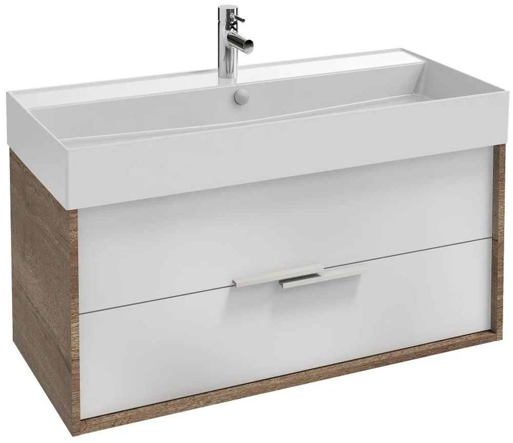 Тумба под раковину Jacob Delafon Vivienne EB1585-E52-N18, 100 см, корпус дуб табак, фасад белый глянцевый
