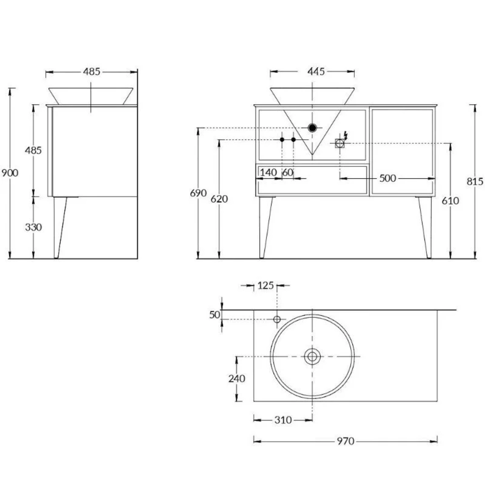 Подвесная тумба с левым расположением раковины. Предназначена для использования с раковиной CO.wbi.44. В комплект входят две регулируемые ножки из массива. Столешница из керамического гранита Ониче бежевый приобретается отдельно. Открытая ниша из МДФ окрашена в матовый цвет лимо. В нише предусмотрена LED-подсветка с сенсорным включением. Внутренний ящик и дверца оснащены системой push-to-open (открытие от нажатия) и окрашены в белый матовый цвет. Смеситель устанавливается в стену или на столешницу.
