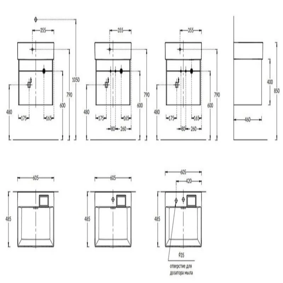 Фасады и корпус выполнены из МДФ в цвете «Песчаный»: верхний фасад — глянцевый тёмный, нижний фасад и корпус — матовый светлый. Тумба имеет два выдвижных ящика с открытием Push to open, с внутренней отделкой «Лён Антрацит».