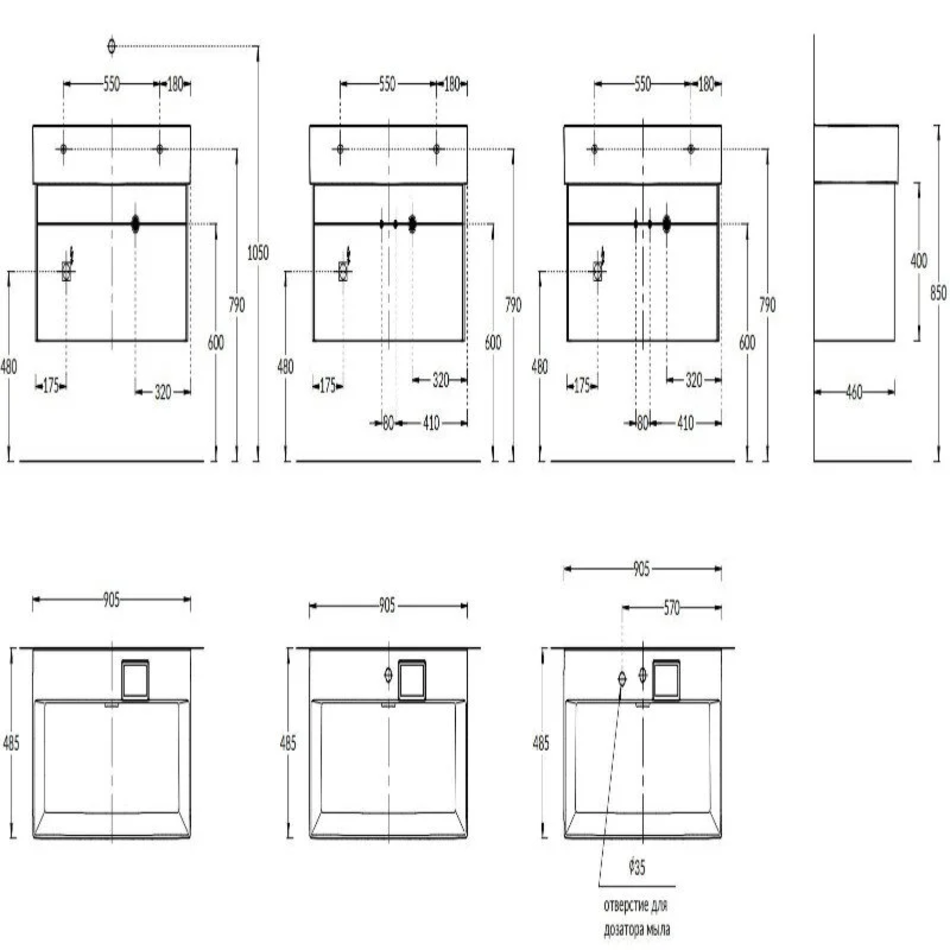 Фасады и корпус выполнены из МДФ в цвете «Песчаный»: верхний фасад — глянцевый тёмный, нижний фасад и корпус — матовый светлый. Тумба имеет два выдвижных ящика с открытием Push to open, с внутренней отделкой «Лён Антрацит».