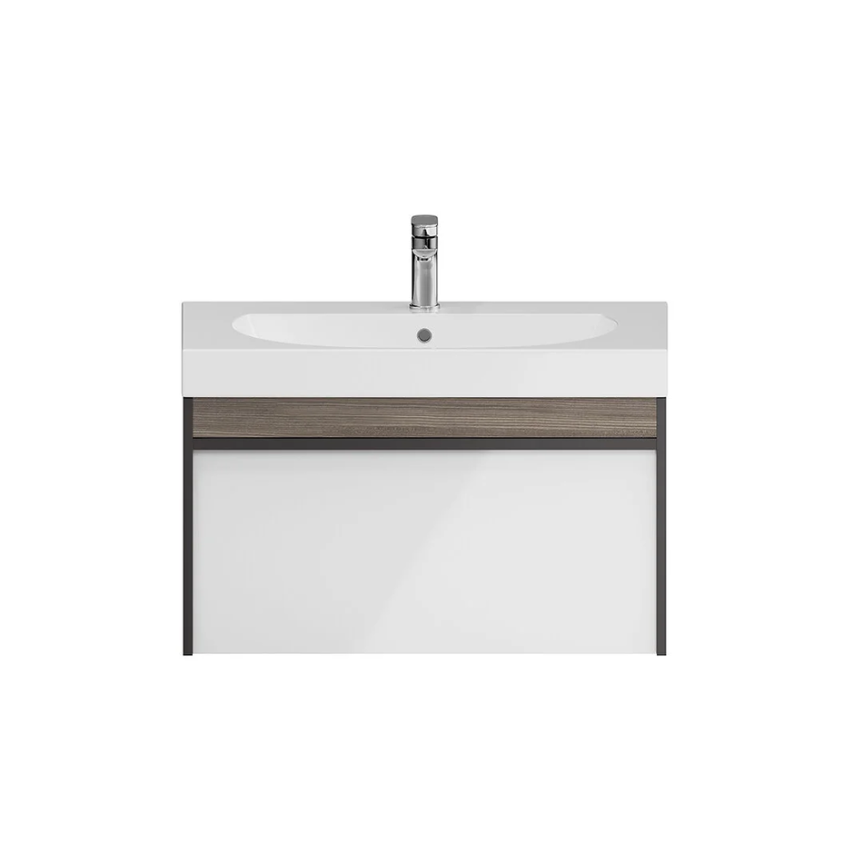 Тумба под раковину Kerama Marazzi Modula 80 см, подвесная, с ящиком, цвет арабика/белый, MOD.80.1+1AR