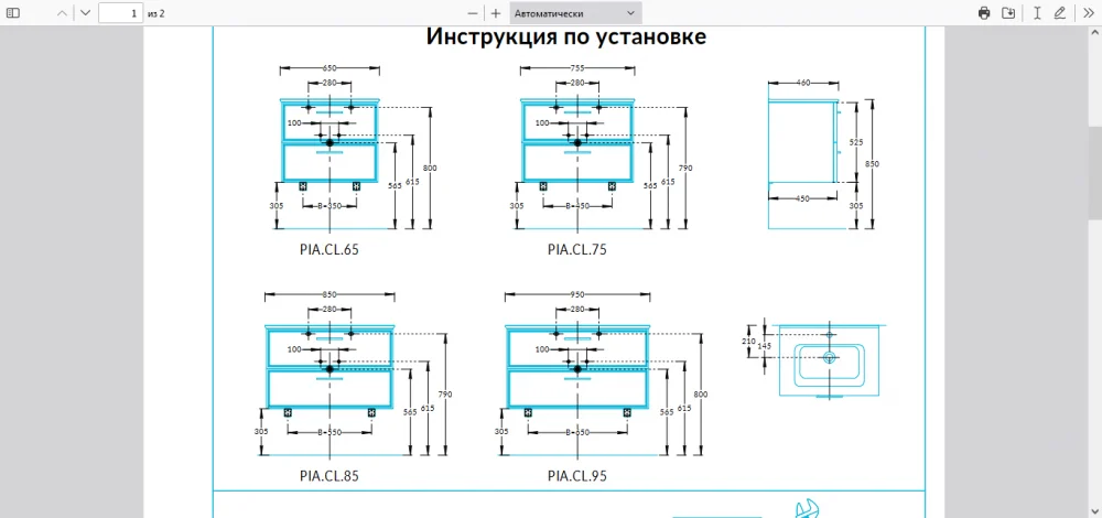 Тумба под раковину Kerama Marazzi Piano Classic 95 см, подвесная, цвет ясень синий матовый, PIA.CL.95.BLU.M