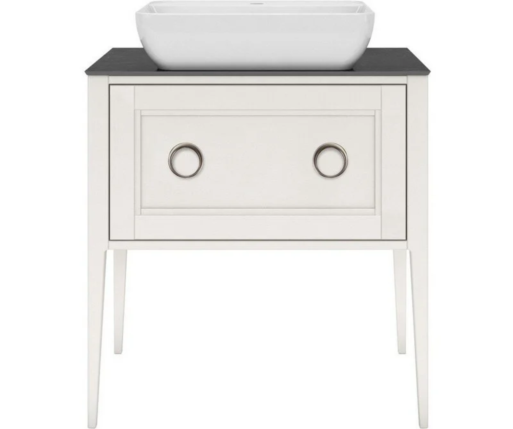 Напольная тумба с одним выдвижным ящиком выполнена из массива ясеня с отделкой «открытая пора». Вместительный ящик с плавным закрыванием украшен двумя крупными ручками. Сочетается с керамическими столешницами PLAZA Classic шириной 80 см. Подходит для установки раковин с типом монтажа «встраиваемая снизу».