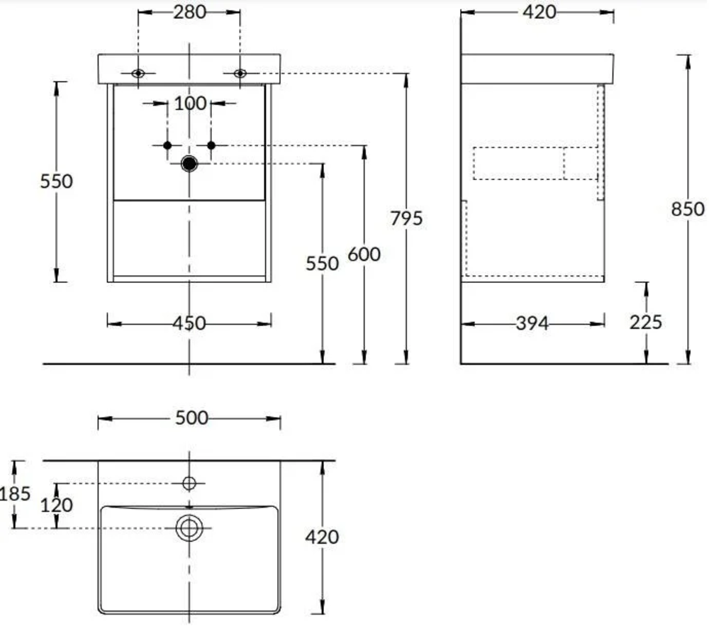 Система хранения: открытая полка + ящик