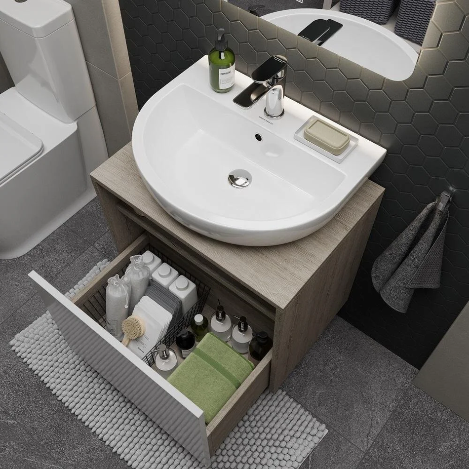 Тумба под раковину Kerama Marazzi Pro 60 см, подвесная,1 ящик, цвет белый/дуб орегон, PRO.60.1.WHT