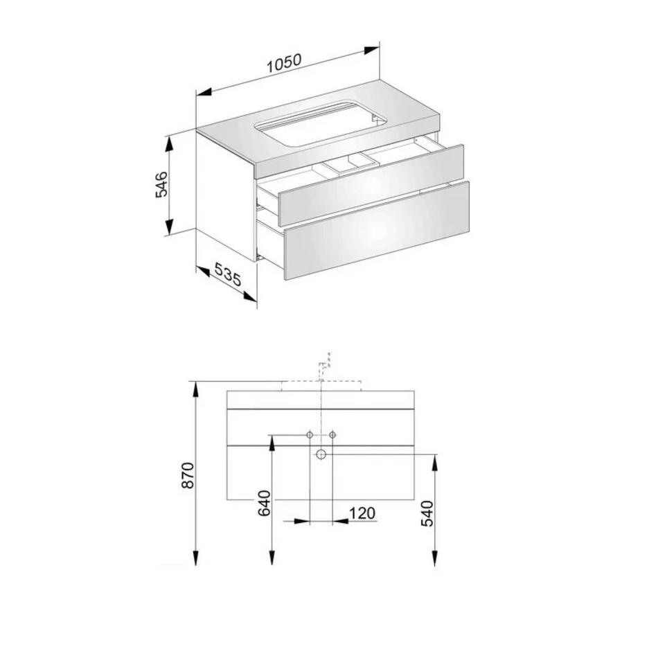 Тумба под раковину Размер: 105 x 53.5 x 54.6 см Монтаж: подвесной Ящики выдвижные: 2 С нажимным открыванием Push-to-Open Доводчики Материал: МДФ Форма: прямоугольная Цвет: орех