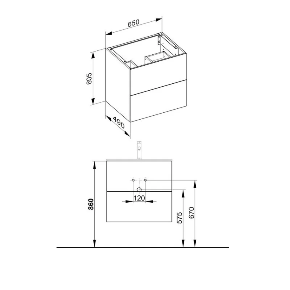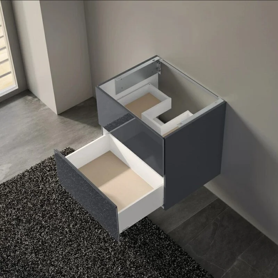 Тумба под раковину Keuco Plan 32953110000, 65 см, подвесная, 2 ящика, цвет антрацит глянцевый