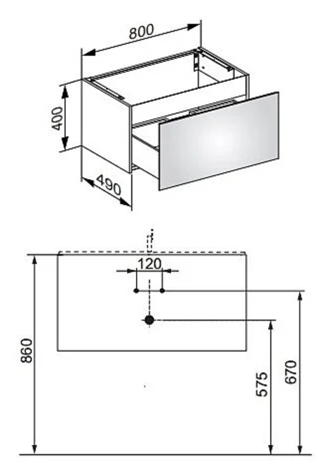 Тумба под раковину Размер: 80 x 49 x 40 см Монтаж: подвесной Ящики выдвижные: 1 Доводчик Материал: МДФ Форма: прямоугольная Цвет: белый