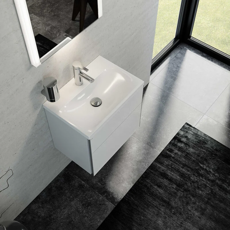 Четкие линии и блики создают ощущение легкости и полета, что присуще классическому модерну. Подстолье к умывальнику впишется в любую обстановку и придаст индивидуальный стиль любой ванной комнате. Эффектное сочетание материалов: блестящий стеклянный фасад и глянцевый корпус, а сверху умывальник из минерального литья. Идеальным завершением являются боковые ручки-профили из анодированного алюминия.