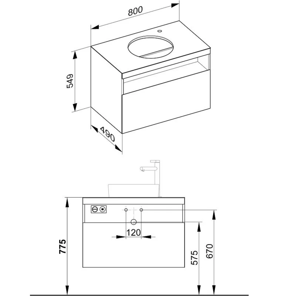 Тумба под раковину Keuco Stageline 32865180100, 80 см, с подсветкой, 1 ящик, цвет кашемир глянцевый