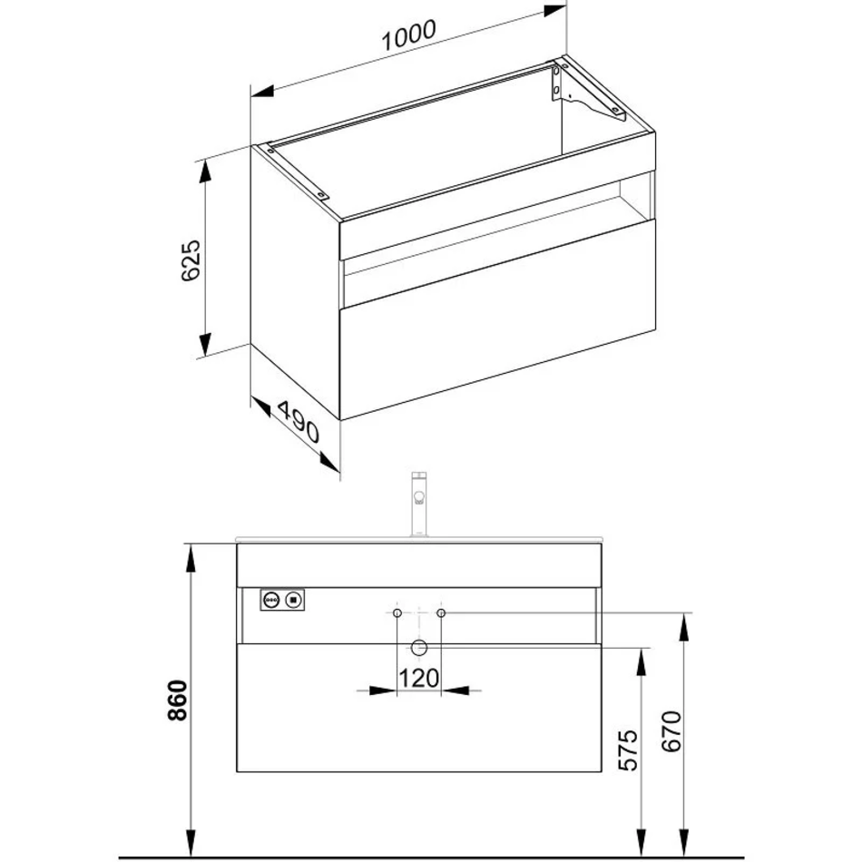 Тумба под раковину Keuco Stageline 32872970100, 100 см, с подсветкой, 1 ящик, цвет вулканит матовый