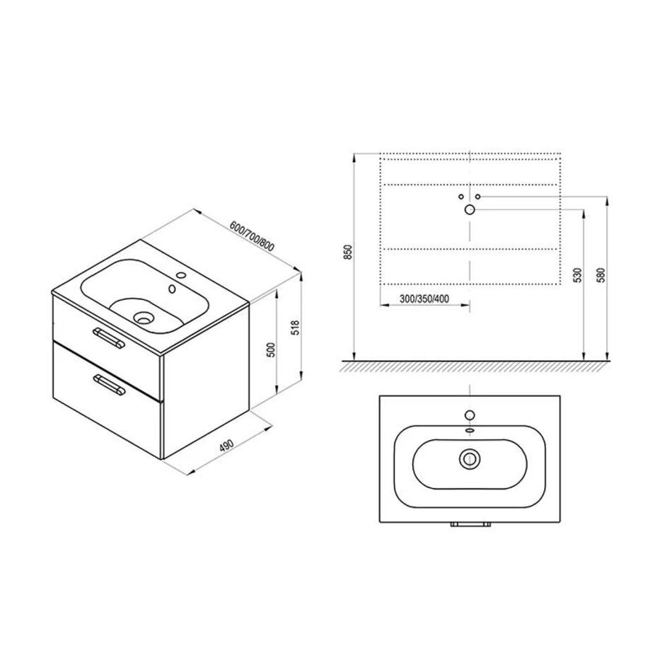 Тумба под раковину Ravak Chrome II X000001772, 60 см, цвет корпуса белый, цвет фасада белый