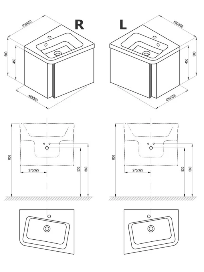 Тумба под раковину Ravak SD 10 угловая, левая/правая, 65 см, белая, X000000745/X000000748