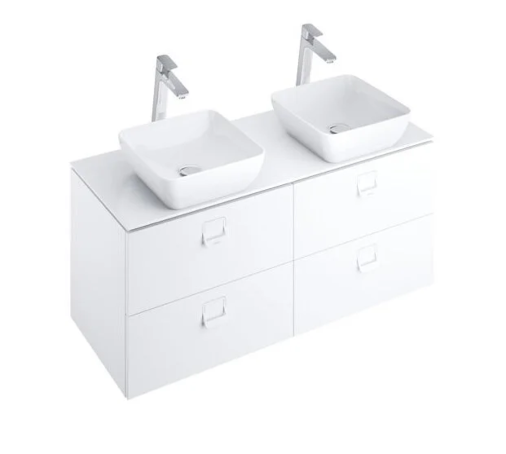 Просторная тумба оснащена двумя выдвижными ящиками с доводчиками. Две металлические ручки обеспечивают удобство пользования ящиками и стандартно поставляются в белом цвете. Мы также предлагаем ручки в хромированном исполнении. Подвесную тумбу можно комбинировать с керамическим умывальником Comfort 600 и сифоном с фиксированным сливом для умывальников без перелива. Другое решение - это комбинация со столешницей Comfort 600 и умывальником для столешницы.
