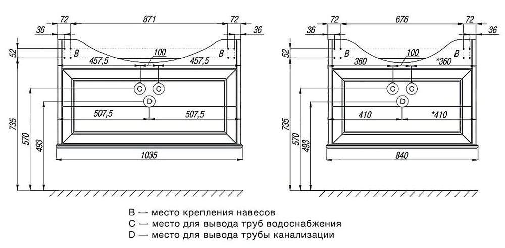 Тумба под раковину Монтаж: подвесной Размер: 84 x 34.2 x 60.4 см Ящики выдвижные: 2 С системой плавного закрывания Материал: массив дерева, шпонированное ВЛДСП Форма: прямоугольная Цвет: дуб темный