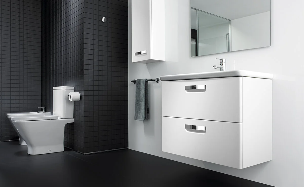 Тумба для раковины The GAP в современном стиле от испанского бренда Roca, выполненная из влагостойкой высококачественной ЛДСП и МДФ, с ящиками с доводчиками.