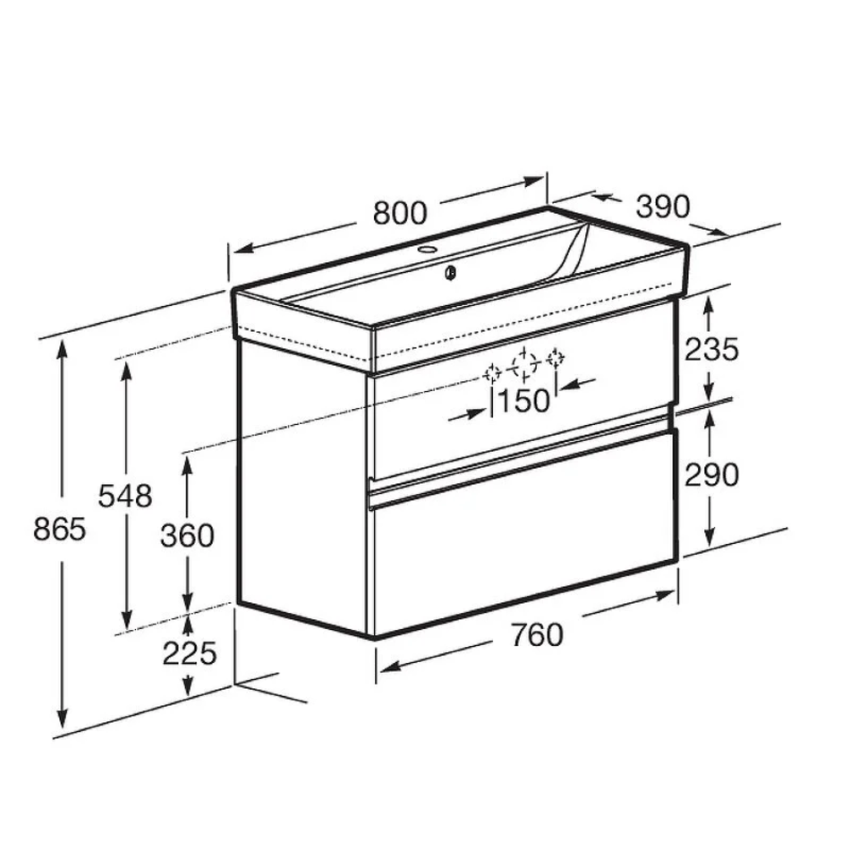Тумба под раковину Roca Oleta 80 см, A857640806, подвесная, цвет белый глянцевый