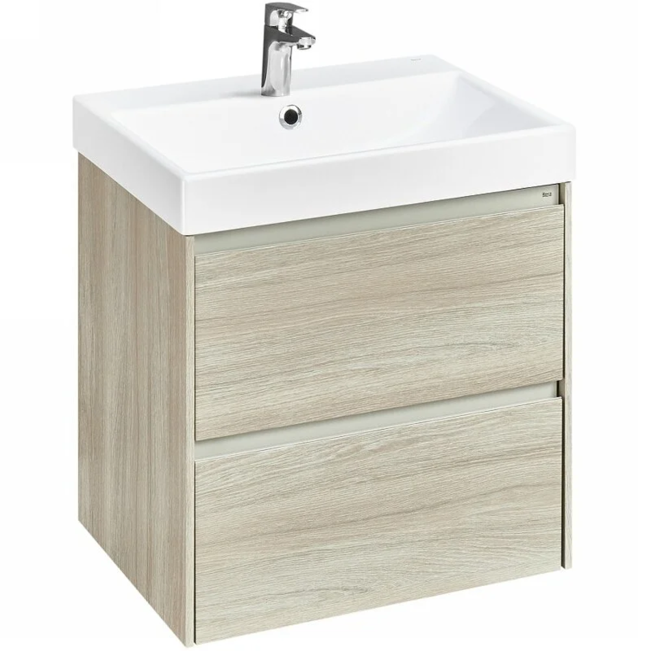 Тумба под раковину Roca Ona 60 см, 857613512, 2 ящика, подвесная, цвет светлый дуб