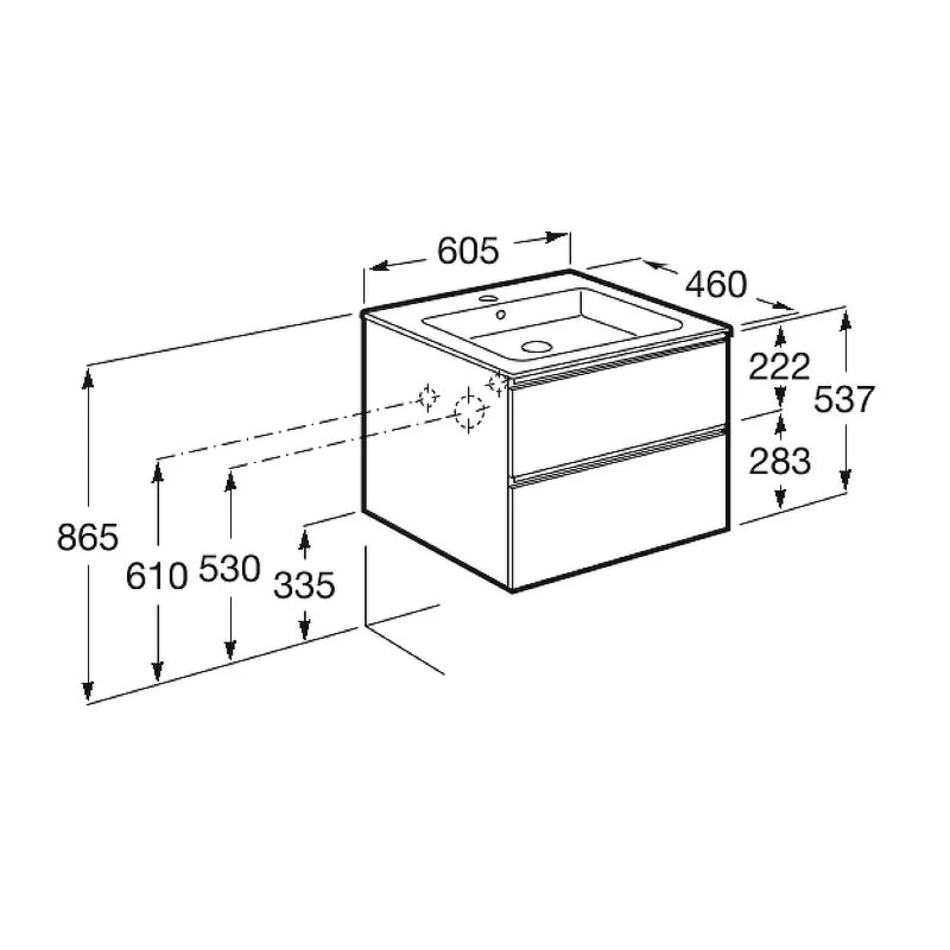 Тумба под раковину Roca The Gap 60 см, A857397806, 2 ящика, подвесная, белый глянцевый