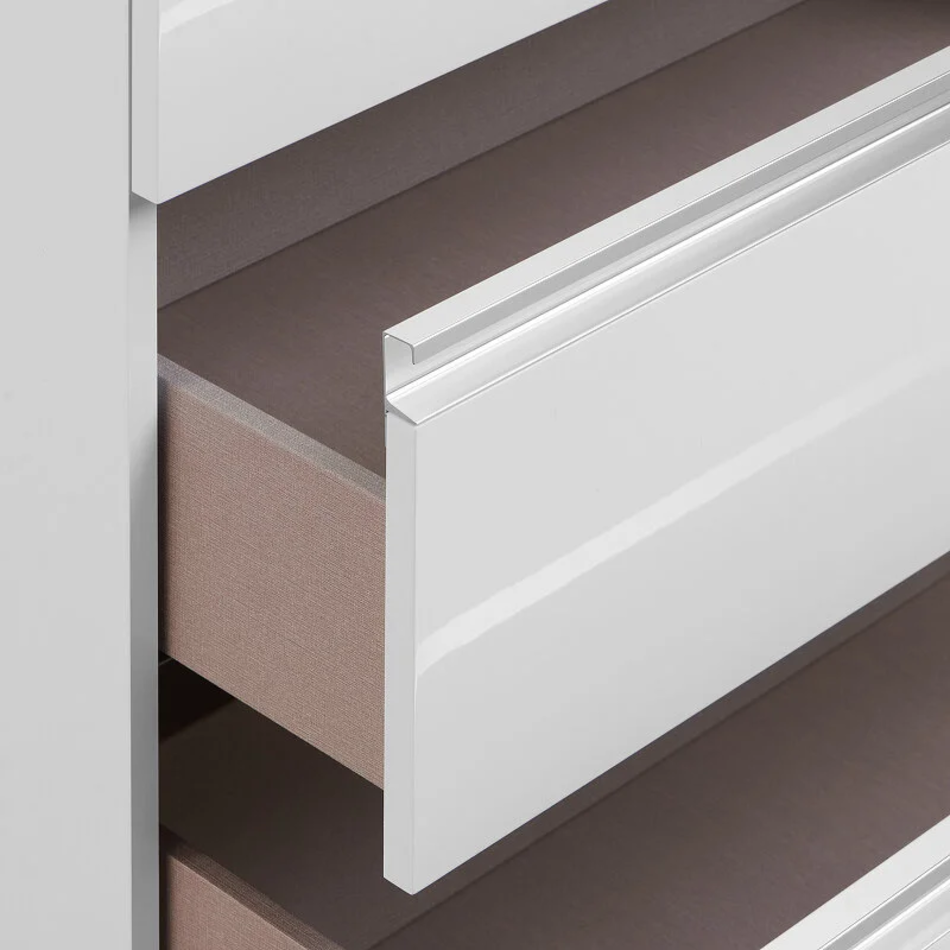 Модуль под раковину THE GAP в цвете белый глянец обладает универсальным современным дизайном и функциональностью. Металлическая ручка во всю ширину модуля удобна в использовании и вместе с направляющими с функцией soft-close делает процесс открывания ящиков легким и приятным. Нижняя часть ручки обработана под углом, что предотвращает скопление воды и пыли. Ручка защищает фасады модуля от попадания капель воды с раковины, а также защищает углы модуля от ударов и износа. Внутренняя отделка ящиков выполнена в цвете бежевый текстиль, приятна на ощупь и предотвращает скольжение предметов. Пространство верхнего ящика разделено на три части, что позволяет хранить предметы для ванной комнаты в идеальном порядке. Благодаря универсальному дизайну модули под раковину THE GAP могут сочетаться с различными вариантами зеркал и зеркальных шкафов из коллекций THE GAP ORIGINAL, ANETO, VICTORIA NORD. Сифон для раковины приобретается отдельно. Снято, аналог A857397806