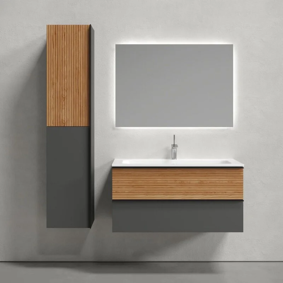 Тумба под раковину Sancos Delta 100 см, подвесная, цвет дуб красный/графит, DL100GR