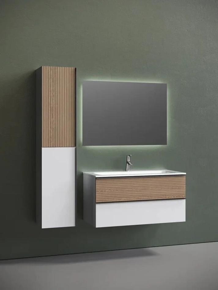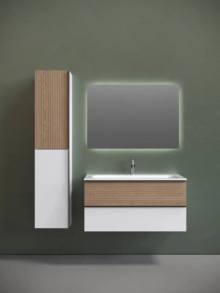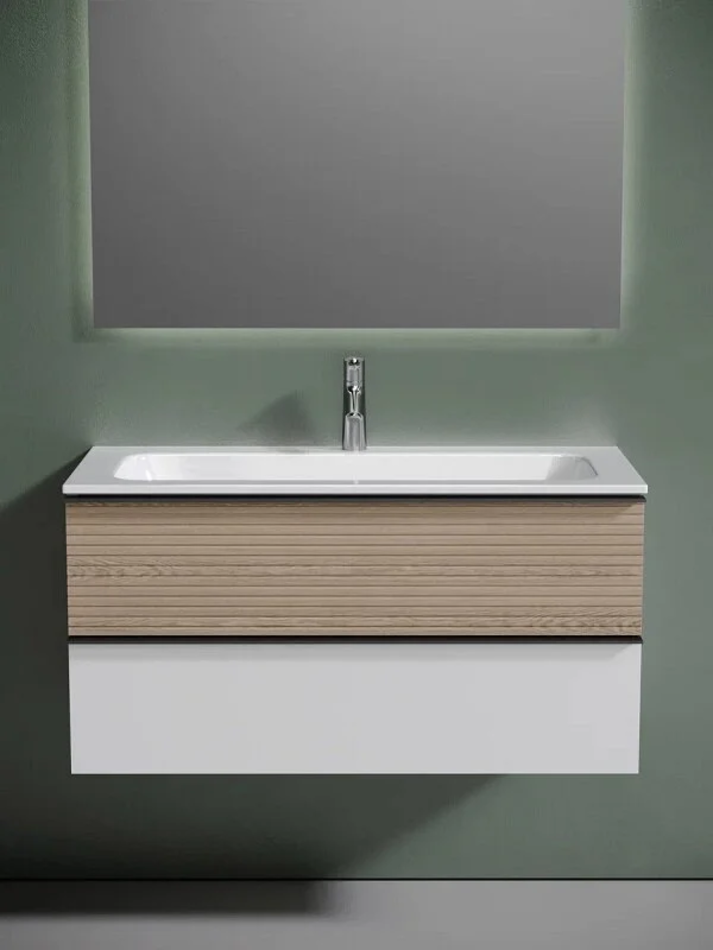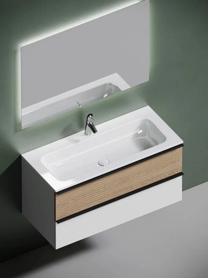 Тумба под раковину Sancos Delta 100 см, подвесная, цвет дуб светлый/белый матовый, DL100W