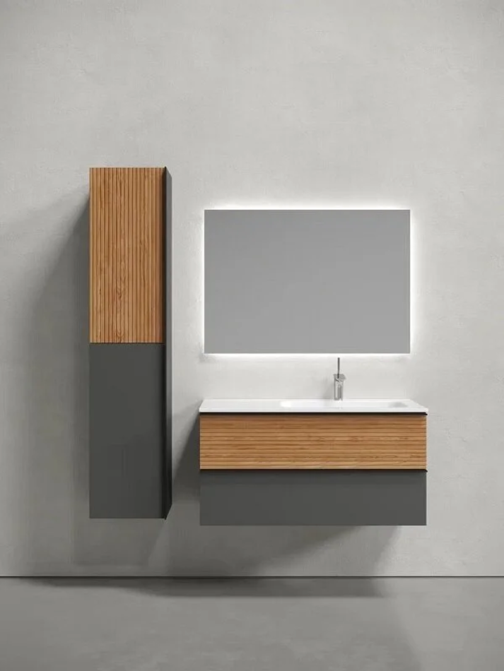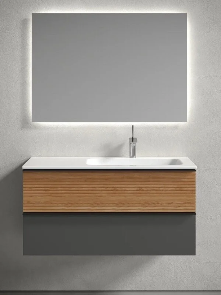 Тумба под раковину Sancos Delta 100 см, подвесная, правая, цвет дуб красный/графит, DL100RGR