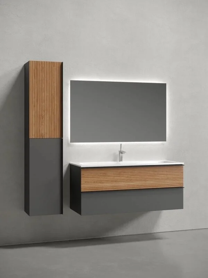 Тумба под раковину Sancos Delta 120 см, подвесная, цвет дуб красный/графит, DL120GR