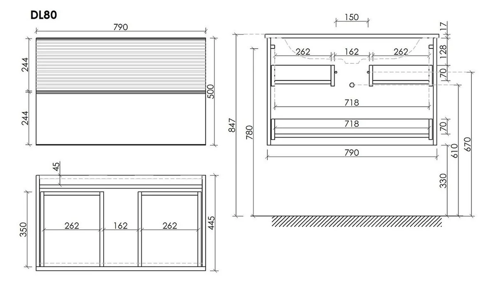 Тумба подвесная Sancos Delta 790х445х500, c двумя ящиками оснащенными доводчиками скрытого монтажа с системой Soft close (плавного закрывания), ручки чёрные профильные накладные, дуб красный/графит, арт., DL80GR
