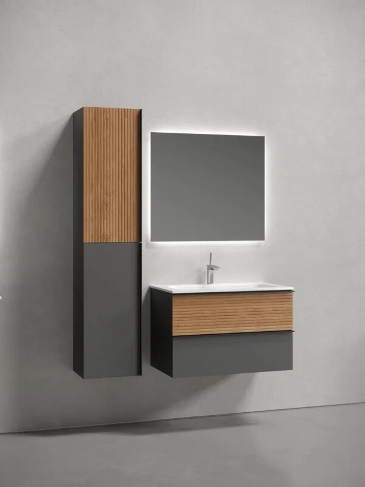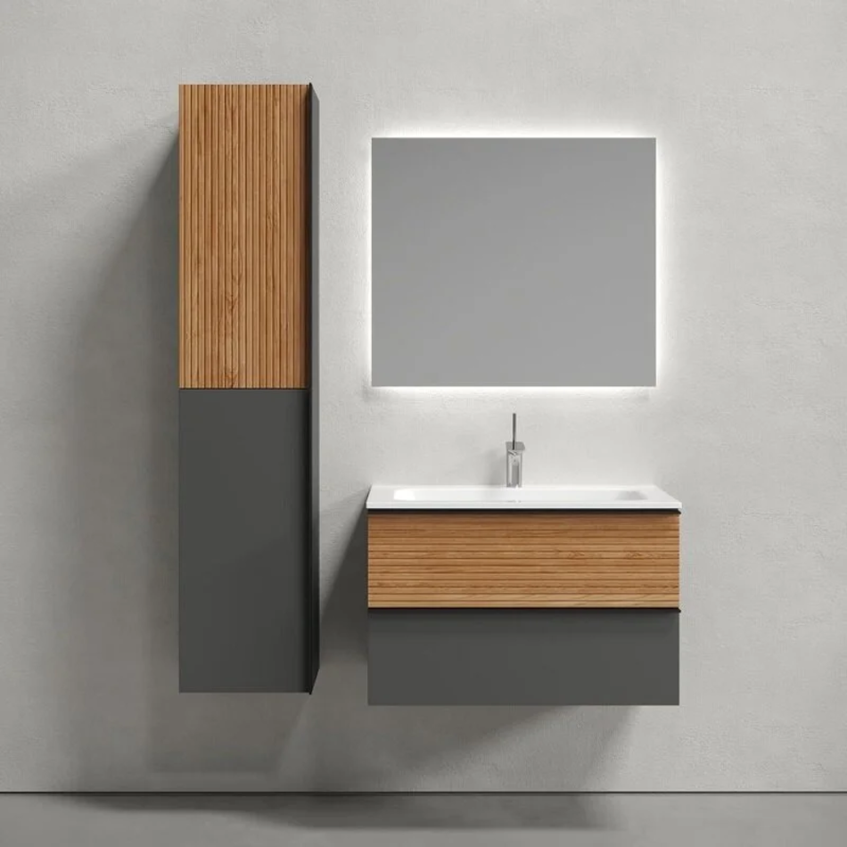 Тумба под раковину Sancos Delta 80 см, подвесная, цвет дуб красный/графит, DL80GR