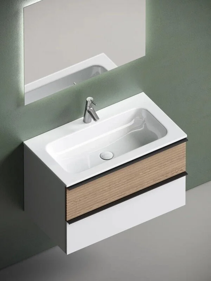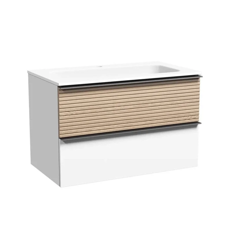 Тумба под раковину Sancos Delta 80 см, подвесная, цвет дуб светлый/белый матовый, DL80W