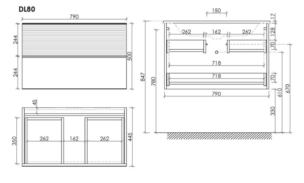 Тумба подвесная Sancos Delta 790х445х500, c двумя ящиками оснащенными доводчиками скрытого монтажа с системой Soft close (плавного закрывания), ручки чёрные профильные накладные, дуб светлый/белый матовый, артикул, DL80GR