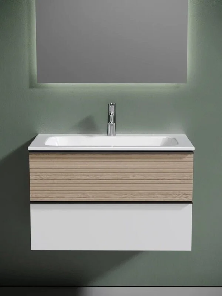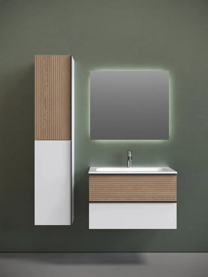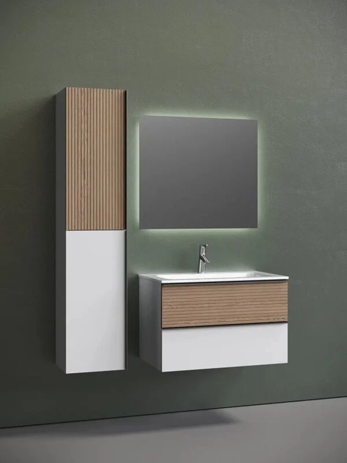 Тумба под раковину Sancos Delta DL80W 80 см, подвесная, цвет дуб светлый/белый матовый