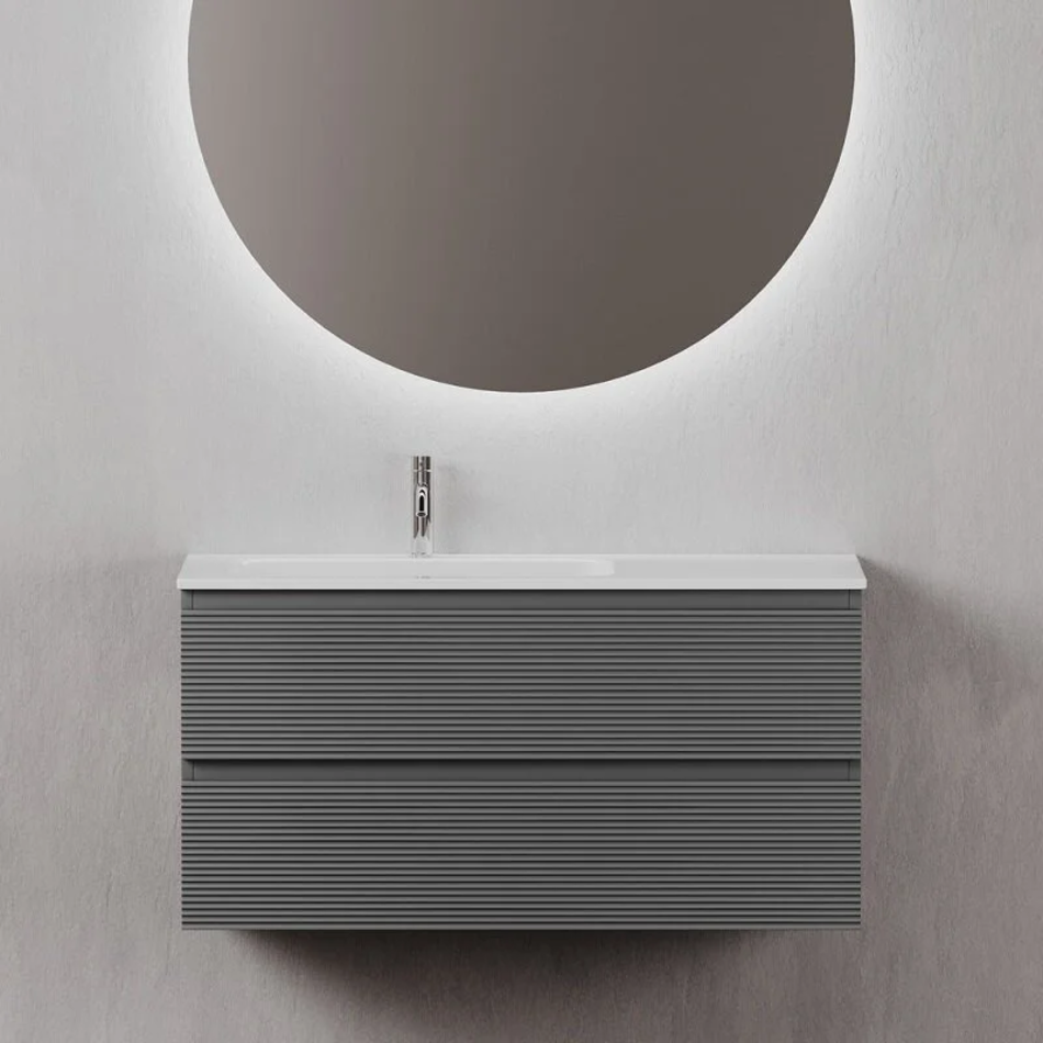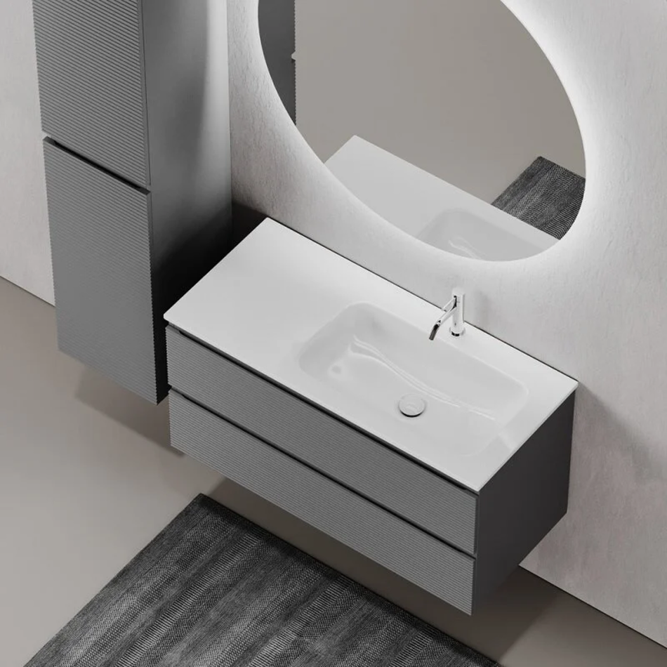 Тумба под раковину Sancos Folk FL100LGS/FL100RGS, 100 см, подвесная, с рельефным фасадом, левая/правая, цвет grey soft