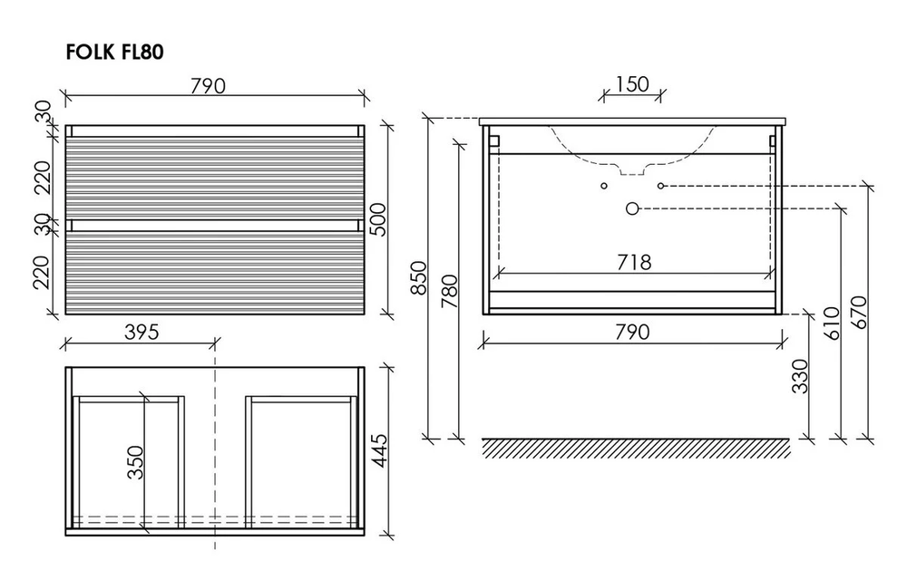 Тумба подвесная, с рельефным фасадом Sancos Folk (Ш:Г:В), 790х445х500 мм, c двумя ящиками, оснащенными доводчиками скрытого монтажа с системой плавного закрывания, цвет bianco, арт. FL80W