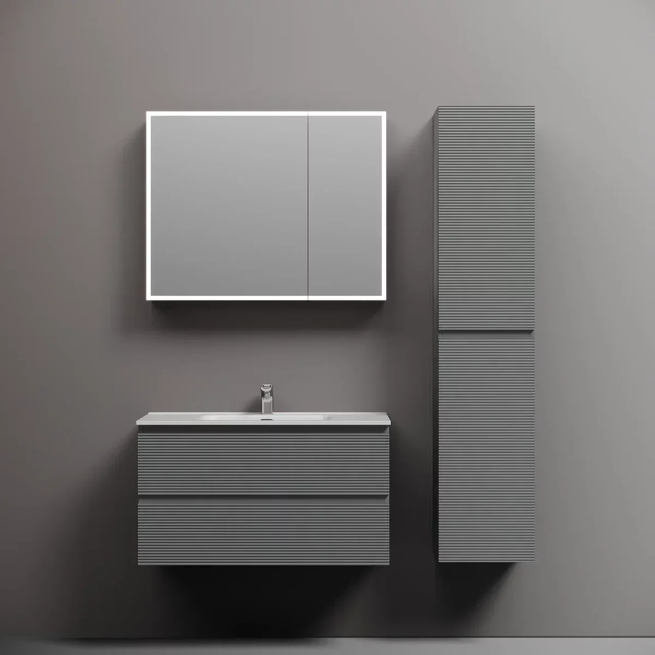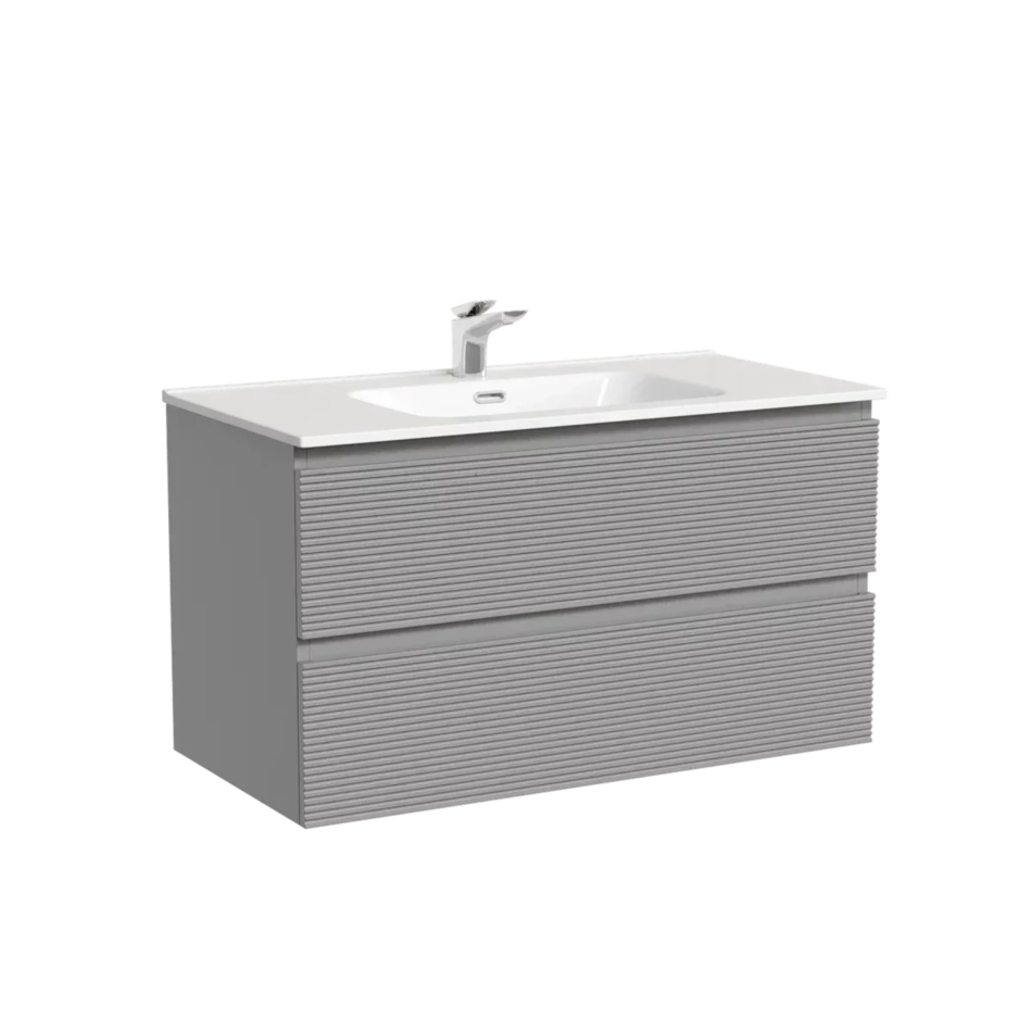 Тумба под раковину Sancos Folk FL90ES, 90 см подвесная, с рельефным фасадом, Ergraut soft