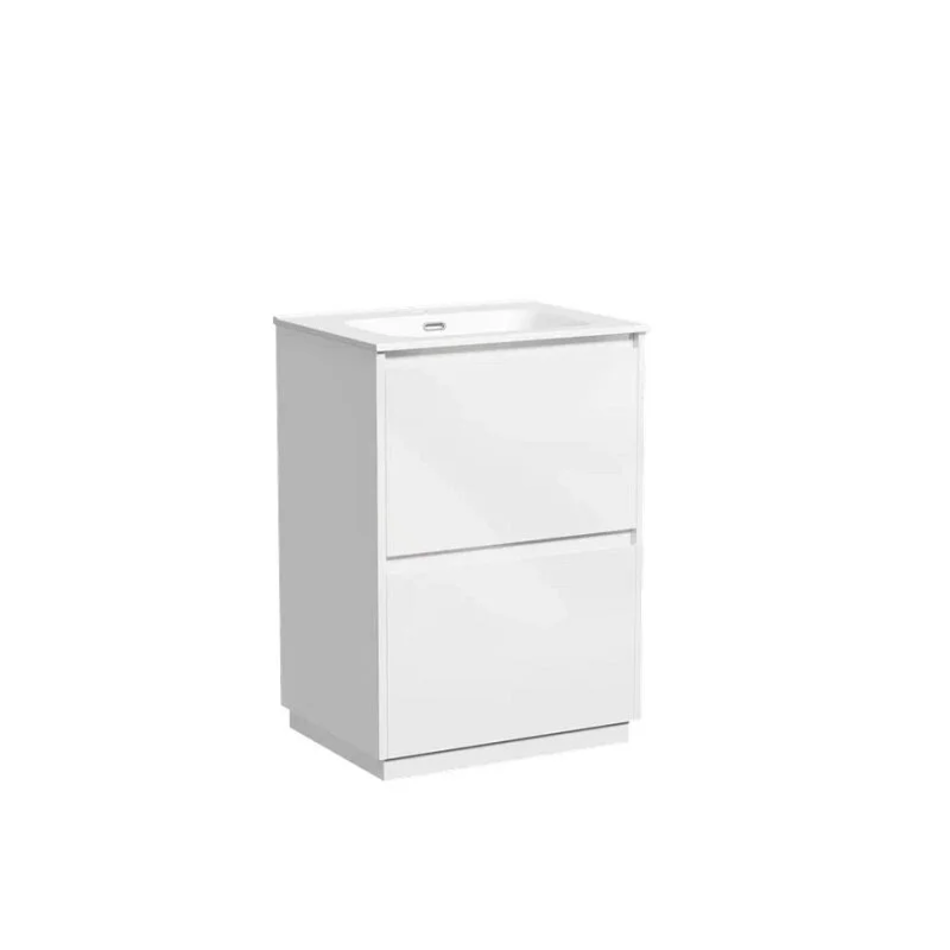 Тумба под раковину Sancos Libra Floor напольная, 590х450х840 c двумя ящиками, оснащенными доводчиками скрытого монтажа с системой Soft close (плавного закрывания), c фрезерованными ручками по всей длине фасада, белый глянцевый, арт.LB60FW