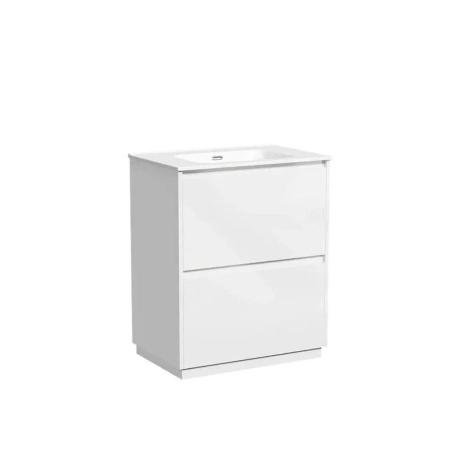 Тумба под раковину Sancos Libra Floor напольная, 690х450х840 c двумя ящиками, оснащенными доводчиками скрытого монтажа с системой Soft close (плавного закрывания), c фрезерованными ручками по всей длине фасада, белый глянцевый, арт. LB70FW
