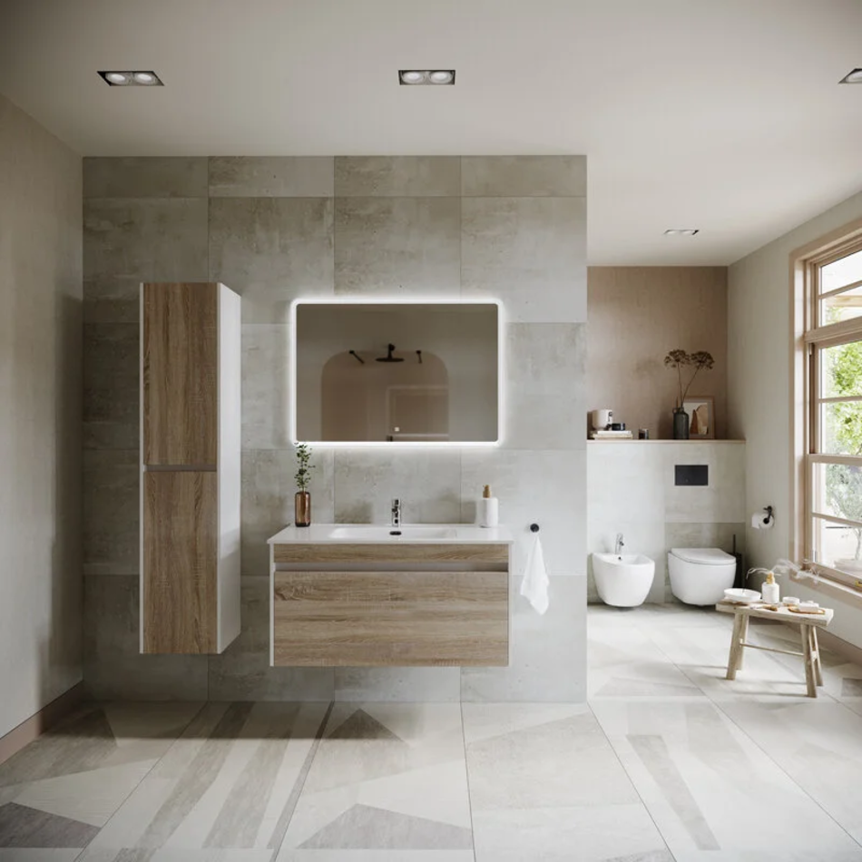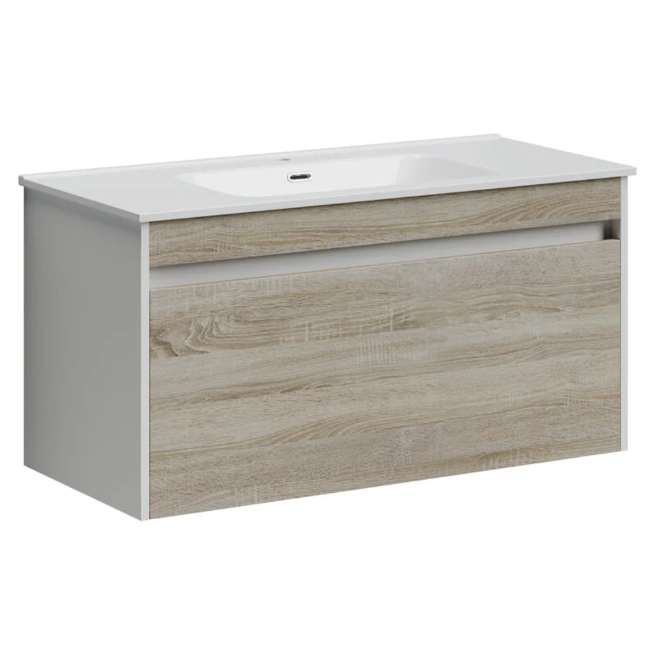 Тумба под раковину Sancos Smart 100, подвесная, дуб бардолино/белый глянец, SM100E