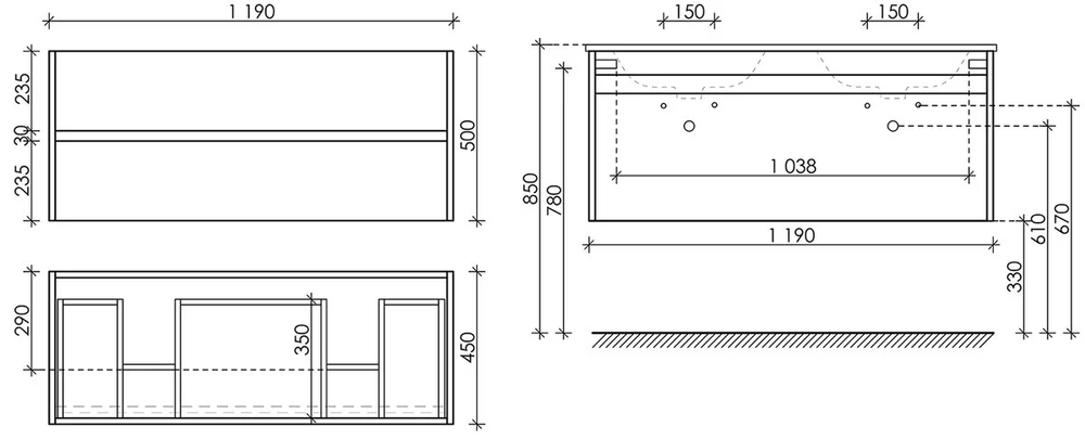 2 выдвижных ящика (1 внешний ящик, 1 внутренний)