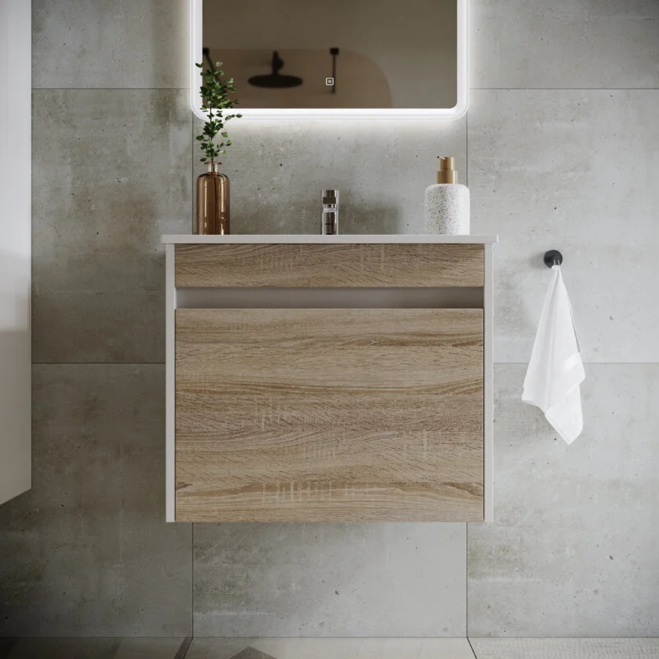 Тумба под раковину Sancos Smart SM60E 60, подвесная, дуб бардолино/белый глянец