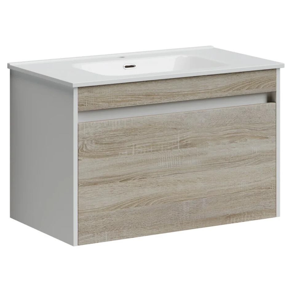 Тумба под раковину Sancos Smart 80, подвесная, дуб бардолино/белый глянец, SM80E