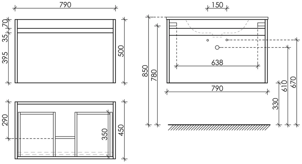 2 выдвижных ящика (1 внешний ящик, 1 внутренний)