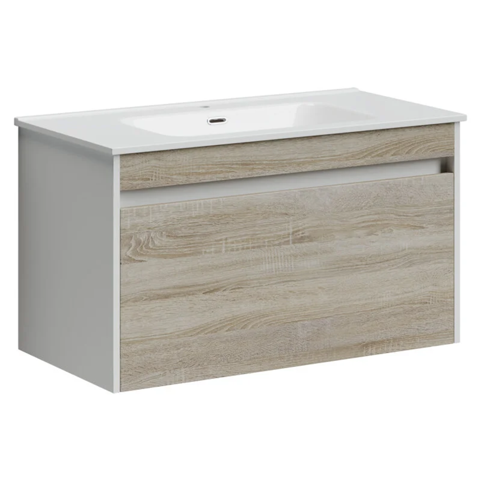 Тумба под раковину Sancos Smart SM90E 90, подвесная, дуб бардолино/белый глянец